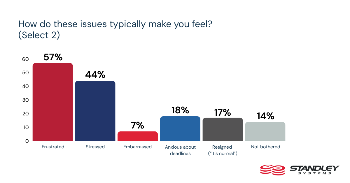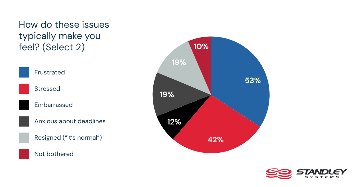 The effect reaches beyond the work itself. More than half of workers, 53%, say these issues leave them frustrated, while 42% say they feel stressed. Repeated interruptions may be easy to dismiss as part of modern work, but they are also shaping how employees experience the workday itself.