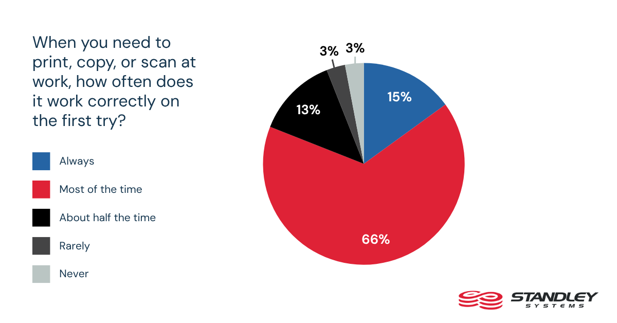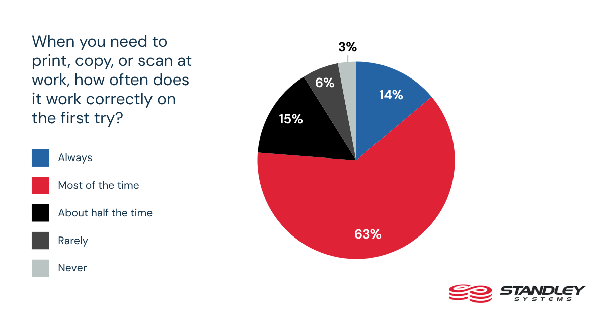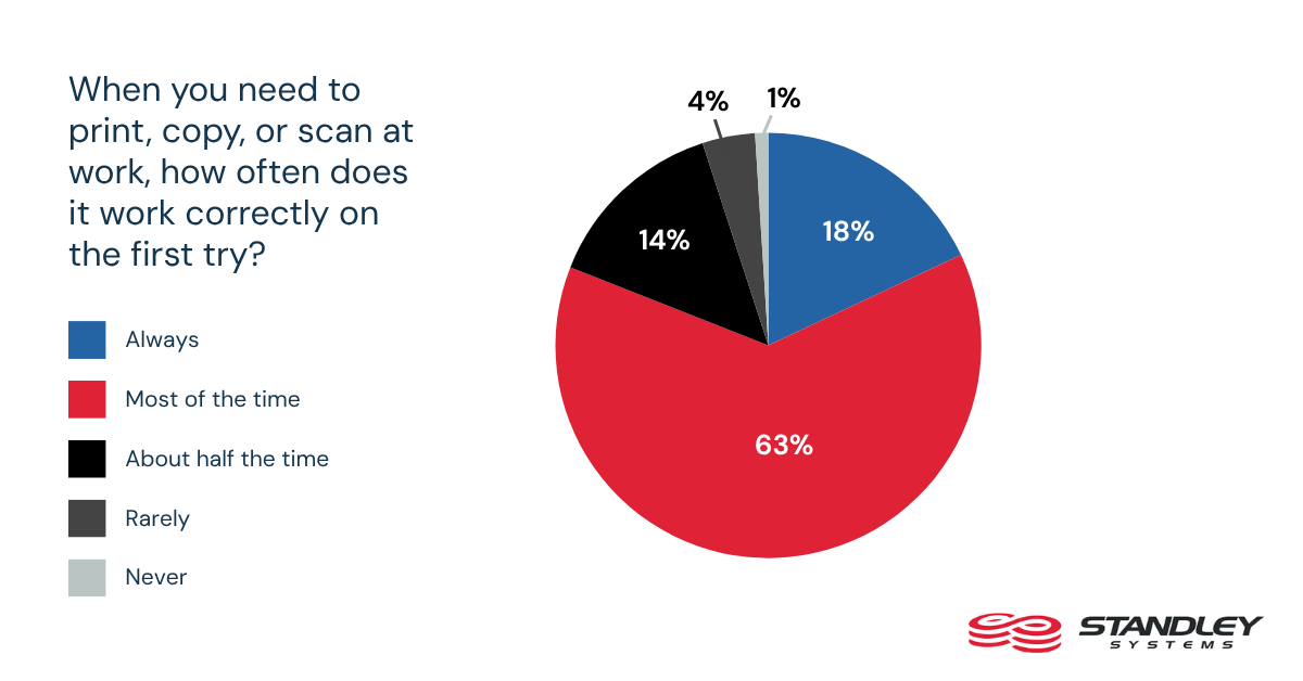 - Only 18% say printing, copying, or scanning always works correctly on the first try.